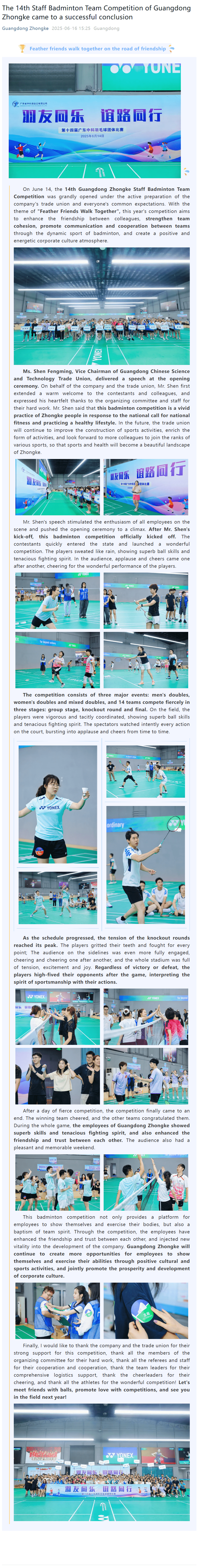 The 14th Staff Badminton Team Competition of Guangdong Zhongke came to a successful conclusion