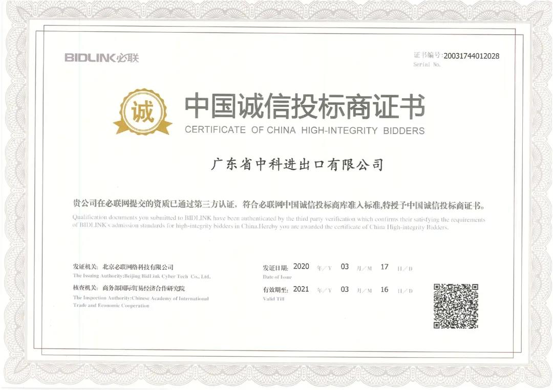 2020年6月 广东省守合同重信用企业