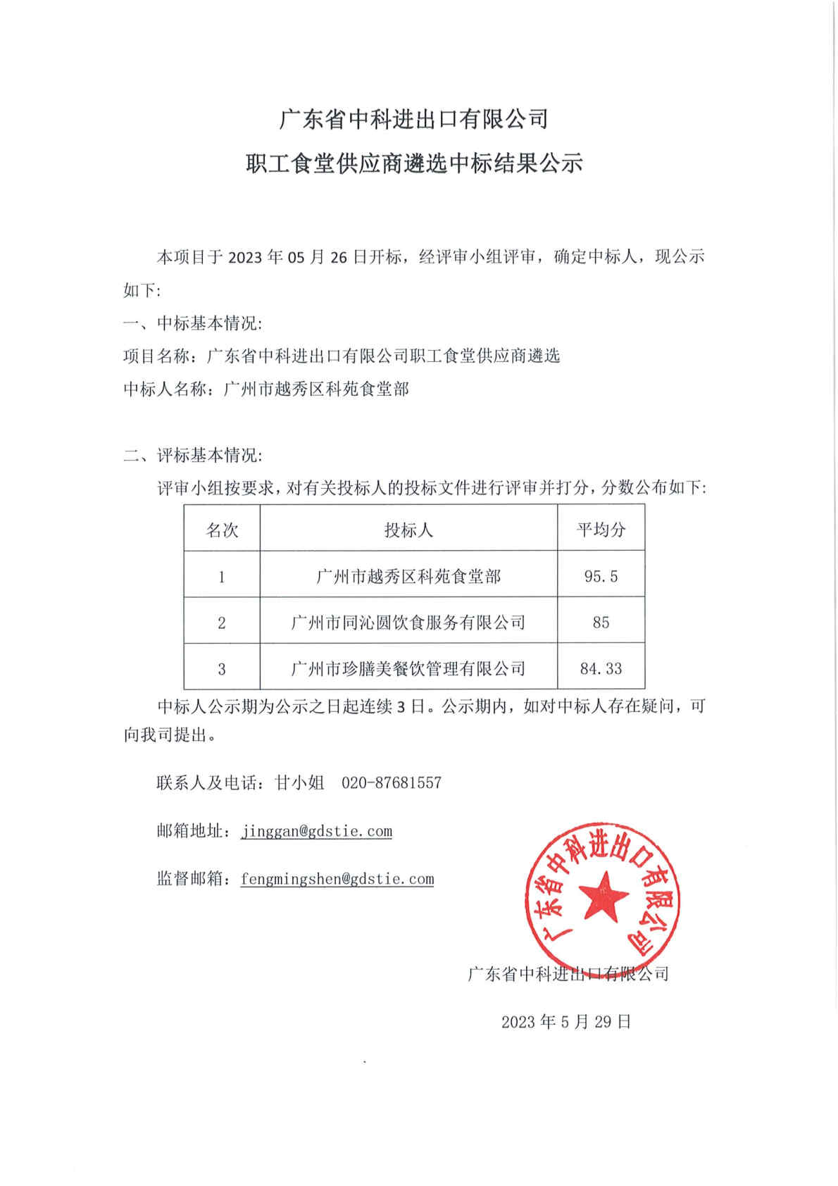 开云体育-开云(中国)一站式服务官方网站 职工食堂供应商遴选中标结果公示