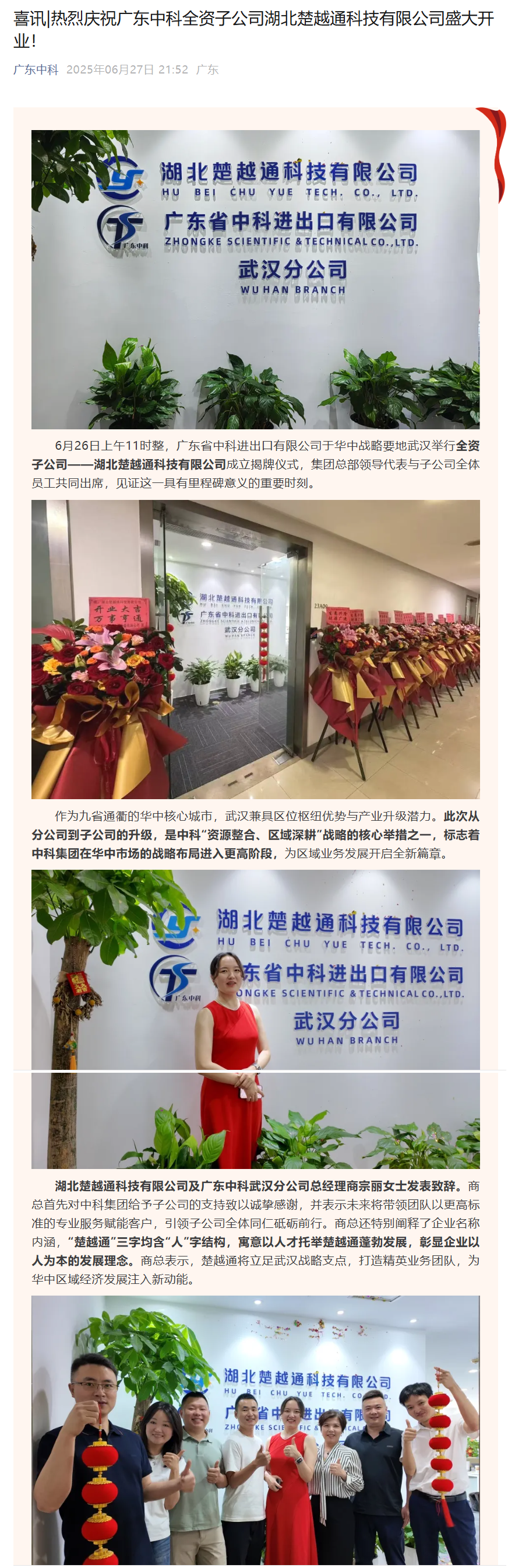喜讯|热烈庆祝广东开云体育-开云(中国)一站式服务官方网站 全资子公司湖北楚越通科技有限公司盛大开业!